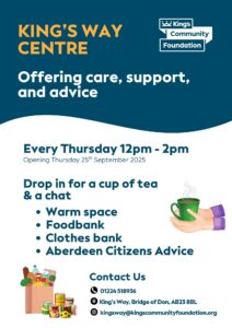 In response to growing need in the local community, we will be opening the King’s Way Centre on Thursday 25th September 2025, in partnership with the King’s Community Foundation.